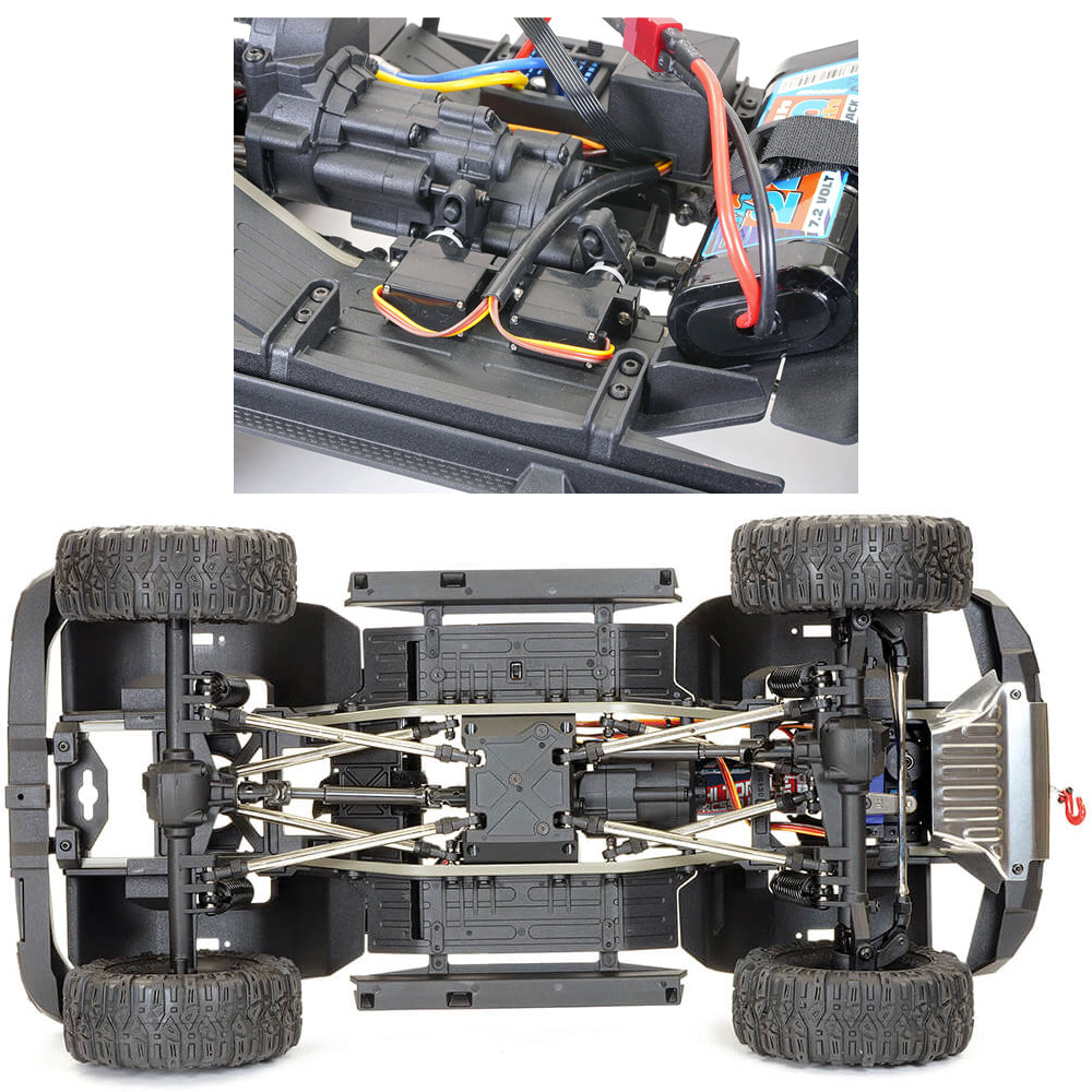 Under the hood, the Centaur boasts several features that seasoned trail fans will like such as a servo operated two-speed gearbox and DIG system. Flip between high and low drive gears and engage/disengage the locked rear axle function with the DIG function all with the press of a TX button.