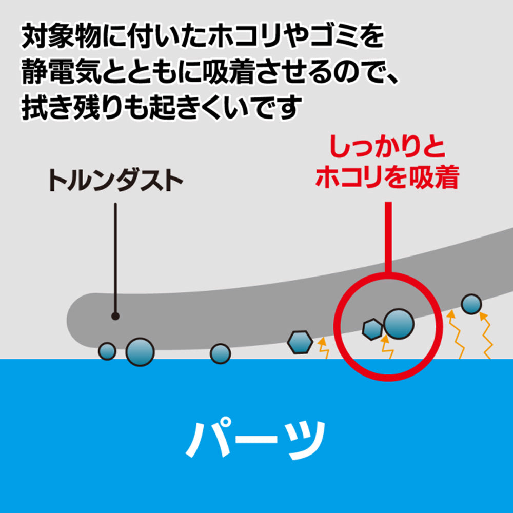 In addition, Torundust Wiper absorbs static electricity along with dust and dirt when wiping it off, so dust is less likely to reattach.