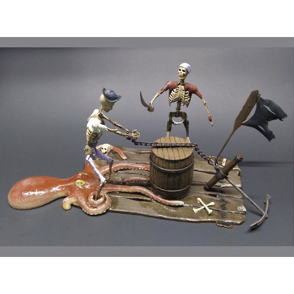 • Two 6” tall pirate-themed skeleton figures on a detailed diorama base.