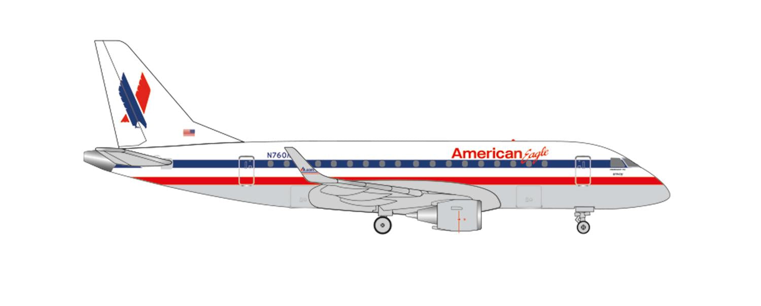 Herpa Wings Embraer E170 American Eagle Heritage N760MQ (1:500) HA536196 1:500