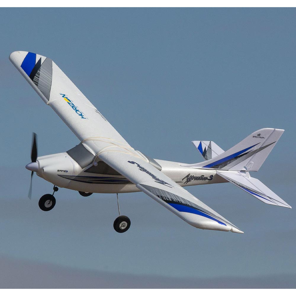 The HobbyZone Apprentice® S 2 1.2m is the perfect trainer because it makes learning to fly an RC airplane easier and more fun than ever before! Featuring a more “traditional” trainer design, the Apprentice S 2 is ready to help aspiring pilots get flying in almost no time at all. It's equipped with exclusive SAFE® (Sensor Assisted Flight Envelope) technology that helps to prevent overcontrol, loss of orientation and crashes so nearly everyone can learn to fly successfully. Beginner, Intermediate and Experienced modes allow you to choose the level of stability and control you need, or are ready to try, at the flip of a switch. And you can instantly return to steady flight using Panic Recovery with the push of a button. Oversized tires and a steerable nose wheel make it easy to take off from and land on a variety of surfaces including grass at large parks, sports and other suitable flying fields. Or, you can install the optional floats to fly from water—which adds to its versatility and capabilities!
