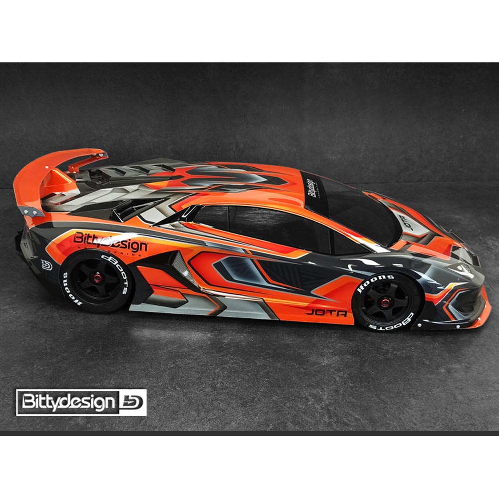 JOTA is a stunning looking GT body designed to push your 1/7 model to the limit, whether you want to test top speed on the straight or drifting with your rc mate in the parking lot behind your house.