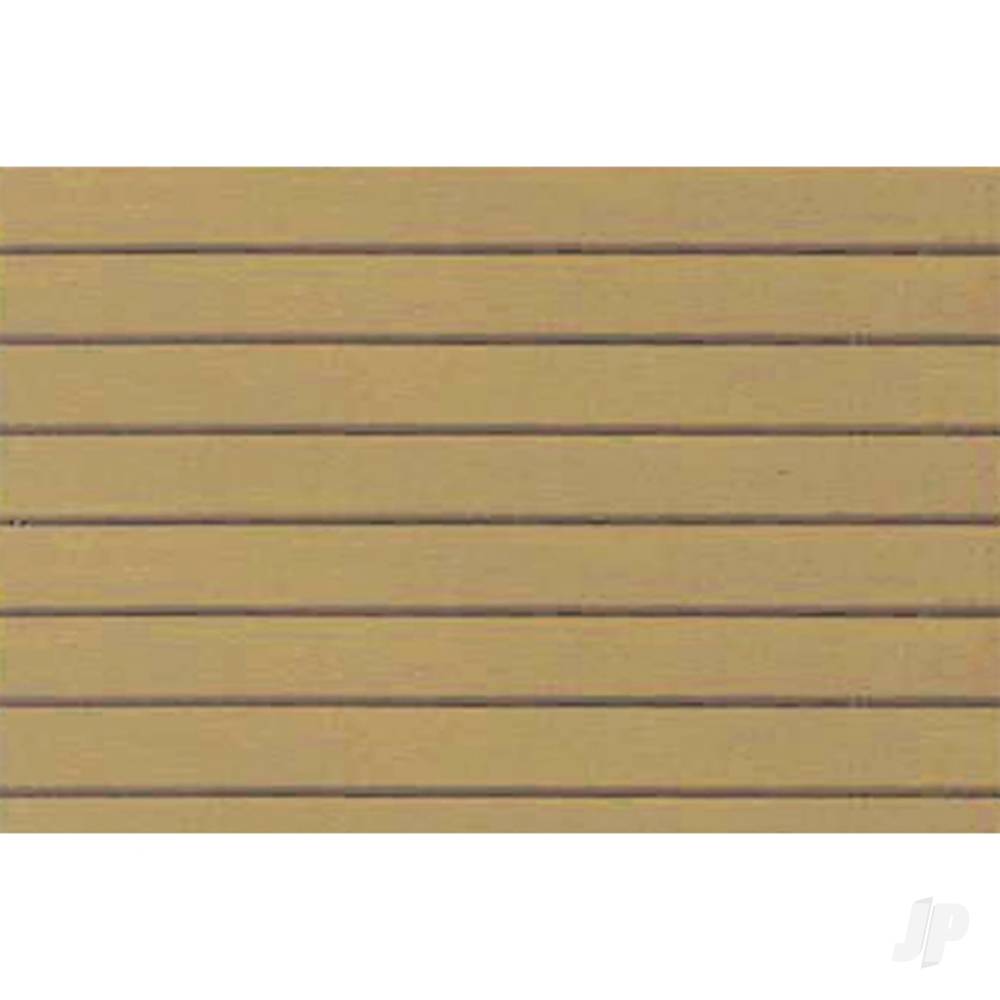 DETAILSJTT's complete range of embossed styrene plastic sheets can be used to create roofing, flooring, siding, rock, stone, metal plate and other architectural parts. The sheets are demanded by architectural firms and modellers for their accurate, embossed detailing and versitality. This pack includes "Clapboard Siding", HO-scale, 2.4mm (1:100).