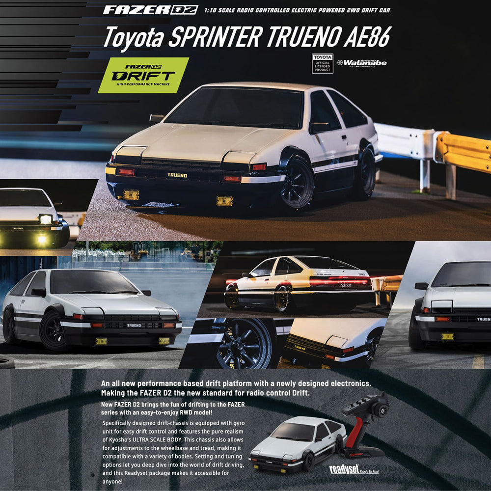 Kyosho Fazer D2 Toyota Sprinter Trueno AE86 White 1:10 Drift RC Car 34501B