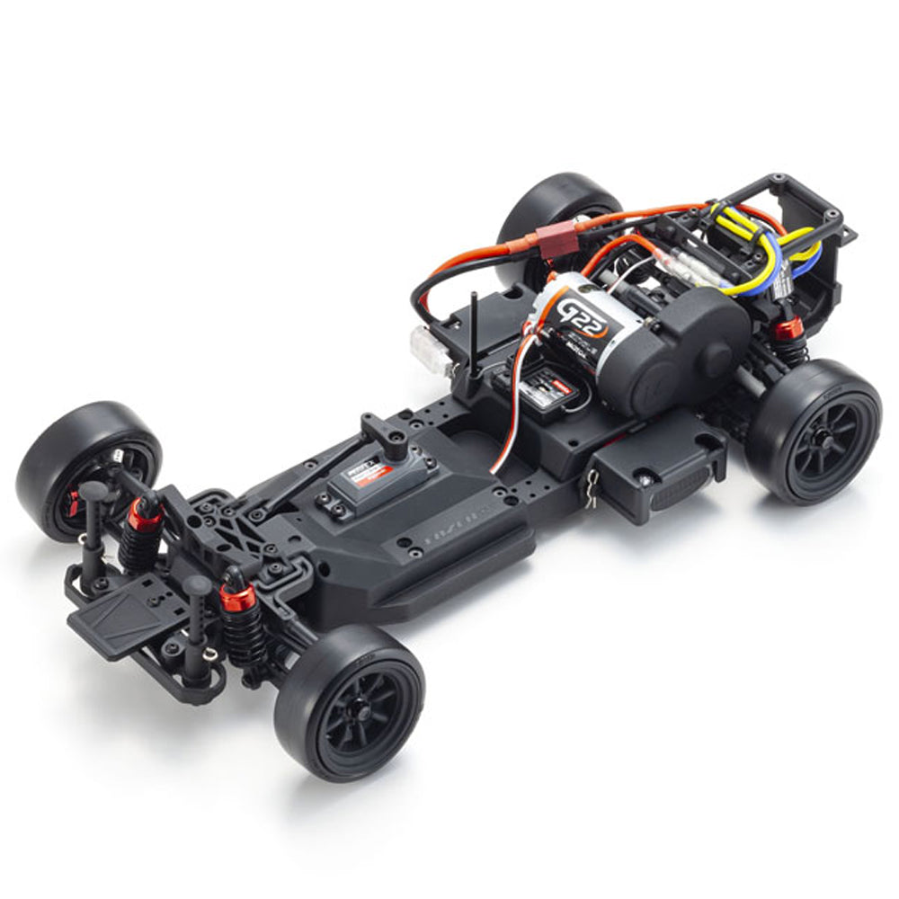 - Completely new drift-spec RWD chassis design features pre-installed R/C system and receiver with built-in gyro. Suspension and motor mount are specifically designed for drift performance.