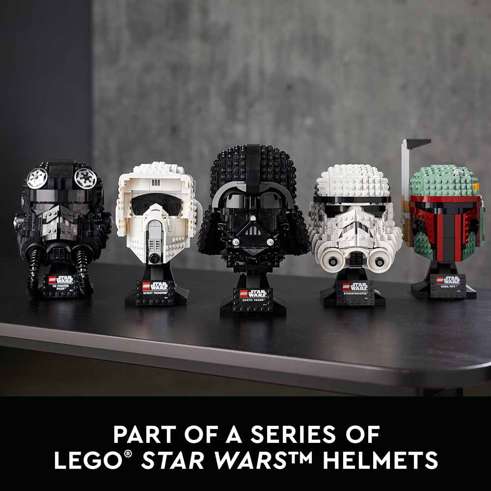 The Darth Vader Helmet is a compact size and has a display stand with a nameplate to complete a striking centrepiece that will enhance the decor of your home or workplace. And check out the other new-for-May-2021 LEGO Star Wars build-to-display helmet: Scout Trooper Helmet (75305).