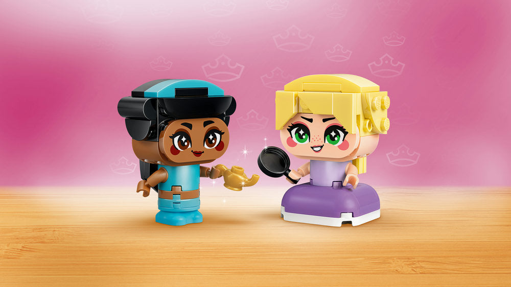 - JASMINE AND RAPUNZEL DISNEY CHARACTERS – This Mini Jasmine & Rapunzel (43303) princess toy building set has 2 LEGO® ǀ Disney Princess fantasy movie characters as part of a collectable series