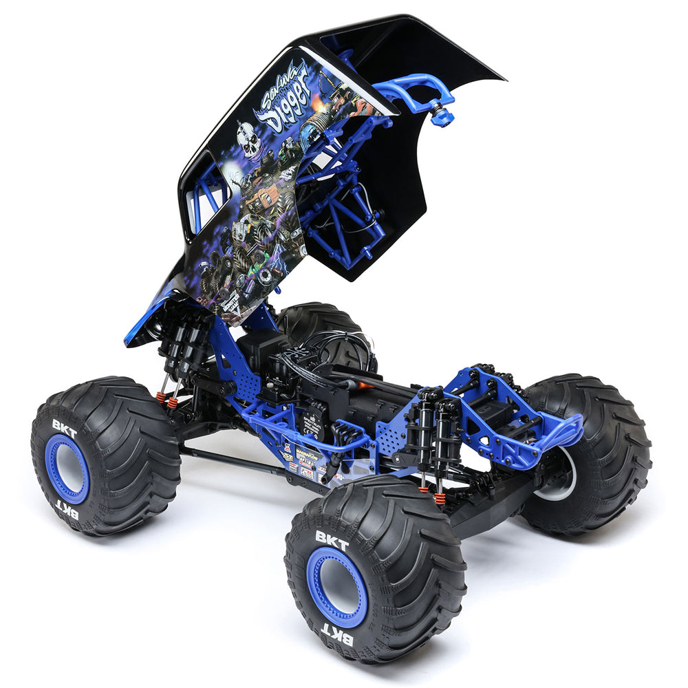 For added convenience, the LMT 2.0 flip-top cage now flips forward for easier battery access and secures to the chassis with a simple twist-lock. Both factory-finished body options - Grave Digger (LOS04028T1) or Son-uva Digger (LOS04028T2) - include exciting scale details such as exhaust headers, LED headlights, a driver figure, and chassis sponsor plates. Each is officially licensed by Monster Jam™ and Feld Motorsports.