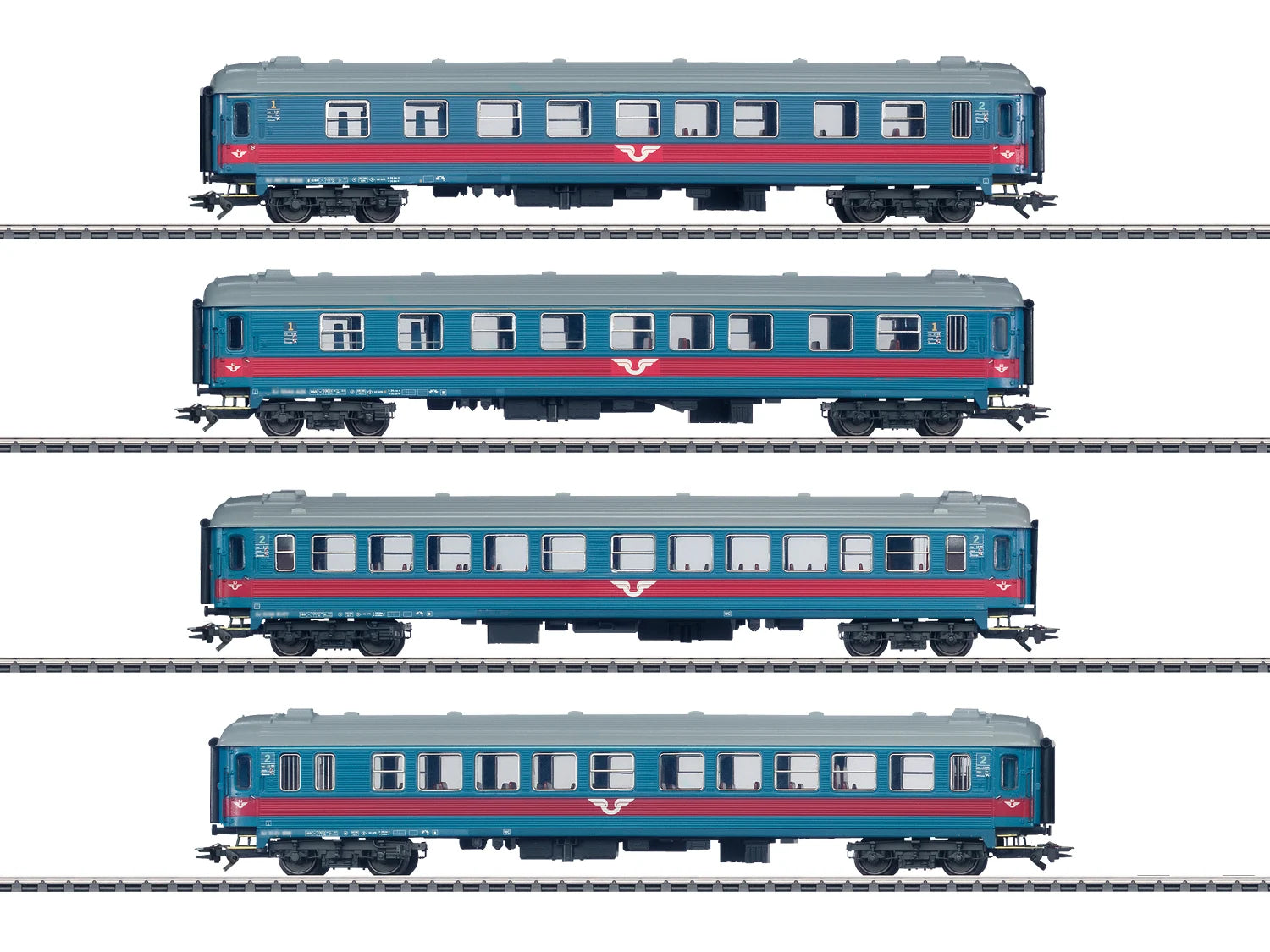 ModelSet of 1:87 Scale coaches decorated in SJ livery. These models feature lots of expertly applied details as based on the prototype, a high level of body detail and excellent running characteristics.