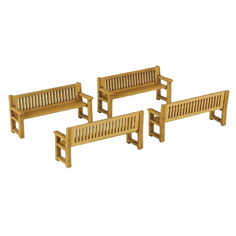 A set of four single 00/H0 scale park benches. 26mm long.