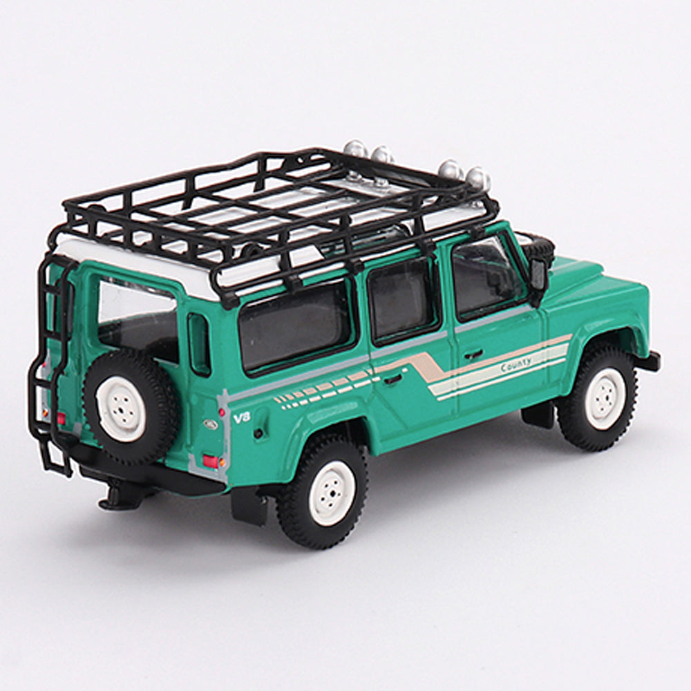 MiniGT Land Rover Defender 110 '85 County Station Wagon Trident Green 1:64 590-R