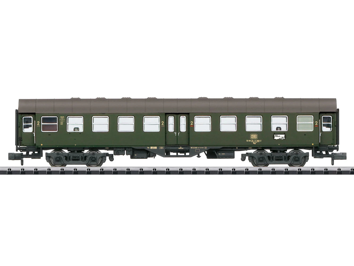 DB Byg514 2nd Class Coach IV 1:160 Scale Coach produced in DB livery. This model features lots of expertly applied details as based on the prototype, a high level of body detail and excellent running characteristics. Features 1:160 Scale Model This model is best suited for Epoch IV model railways This model is best suited to layouts based around Germany This model is decorated in DB company mrkings