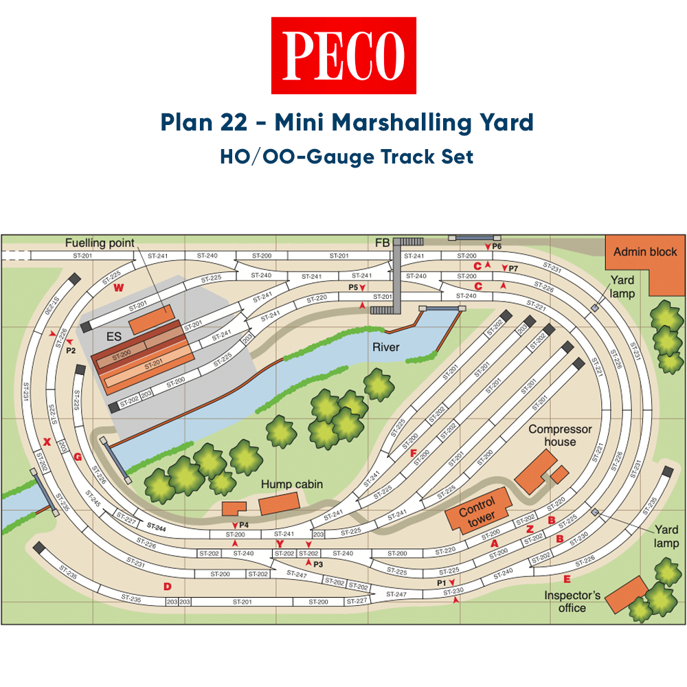 Our track packs are comprised purely of the track pieces, buffer stops (ST-270) & power connecting clips (ST-273) needed to complete the plans. Track fixings (pins, glue etc), buildings and scenery are not included, however we offer an incredible range (10,000s) of Model Railway products from most leading brands at competitive prices ensuring you can complete your incredible layout completely how you want it, to your spec. We also offer an unbeatable range of HO-Gauge locos, coaches and wagons to compliment any of the different themes, eras and lines in any of the PECO track plans.