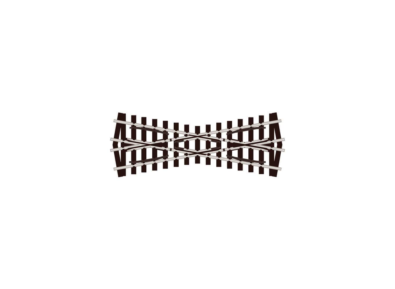 The Short Crossing is double the angle of other track components in this range; it can be used with 4 Medium radius turnouts (SL-E1495/6) to form a scissors crossover, or even more complex formations incorporating the SL-E1490 double slip.