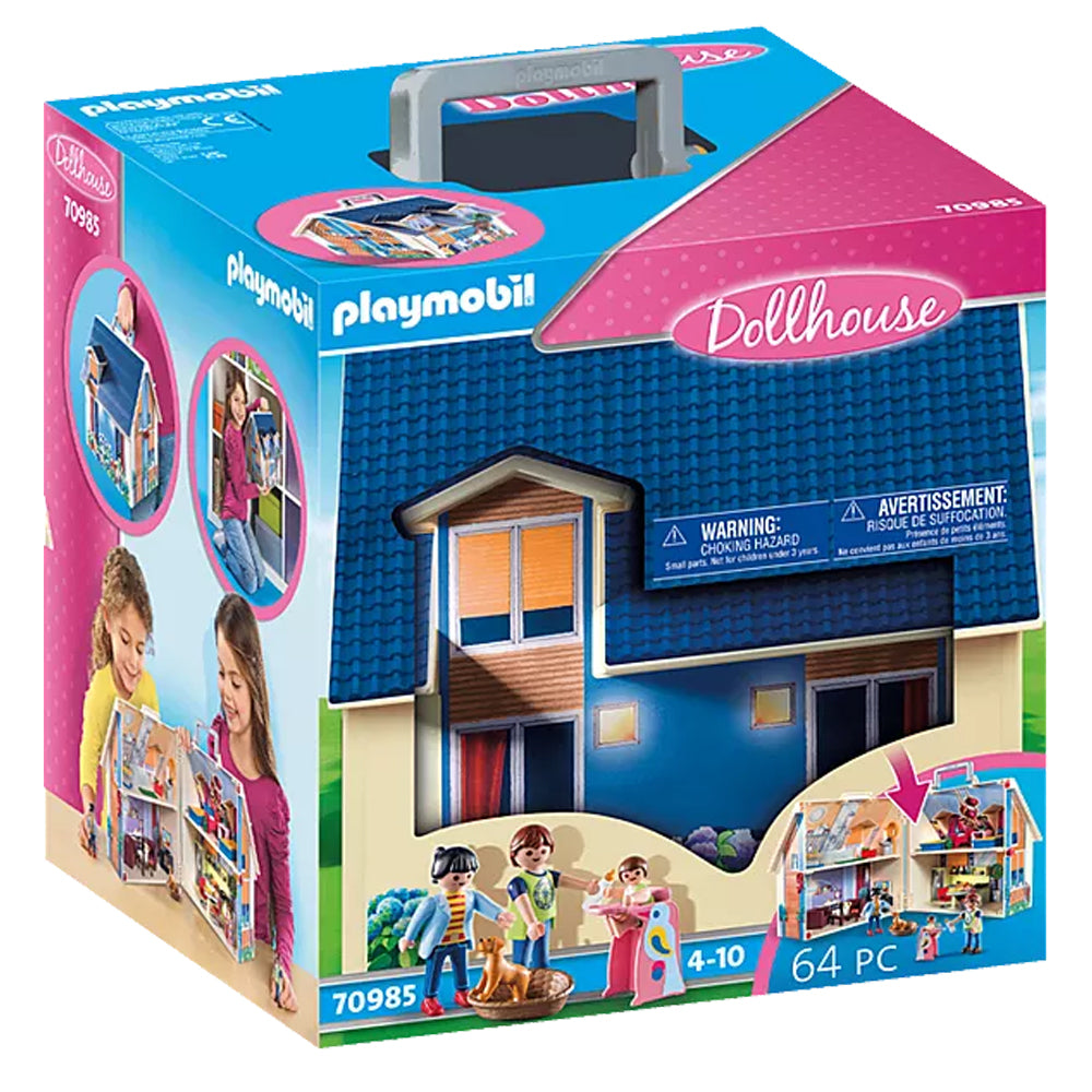 Figures: 1 woman, 1 man, 1 baby; animals: 1 dog puppy; accessories: 1 take-home dollhouse, 2 armchairs, 1 TV set, 1 shelf, 1 coffee table, 2 beds, 1 shelf, 1 book, 1 basket, 1 box, 1 cradle, 1 clock radio, 1 doll, 1 baby bottle, 1 high chair, 2 chairs, 1 kitchen table, 1 fridge, 1 dishwasher, 2 cups, 2 plates, 1 pot, 1 pan, 1 saucepan, 1 pack of eggs, 1 banana, 1 jam jar, 1 bathtub, 1 toilet, 1 sink with mirror, 1 towel, 1 basket