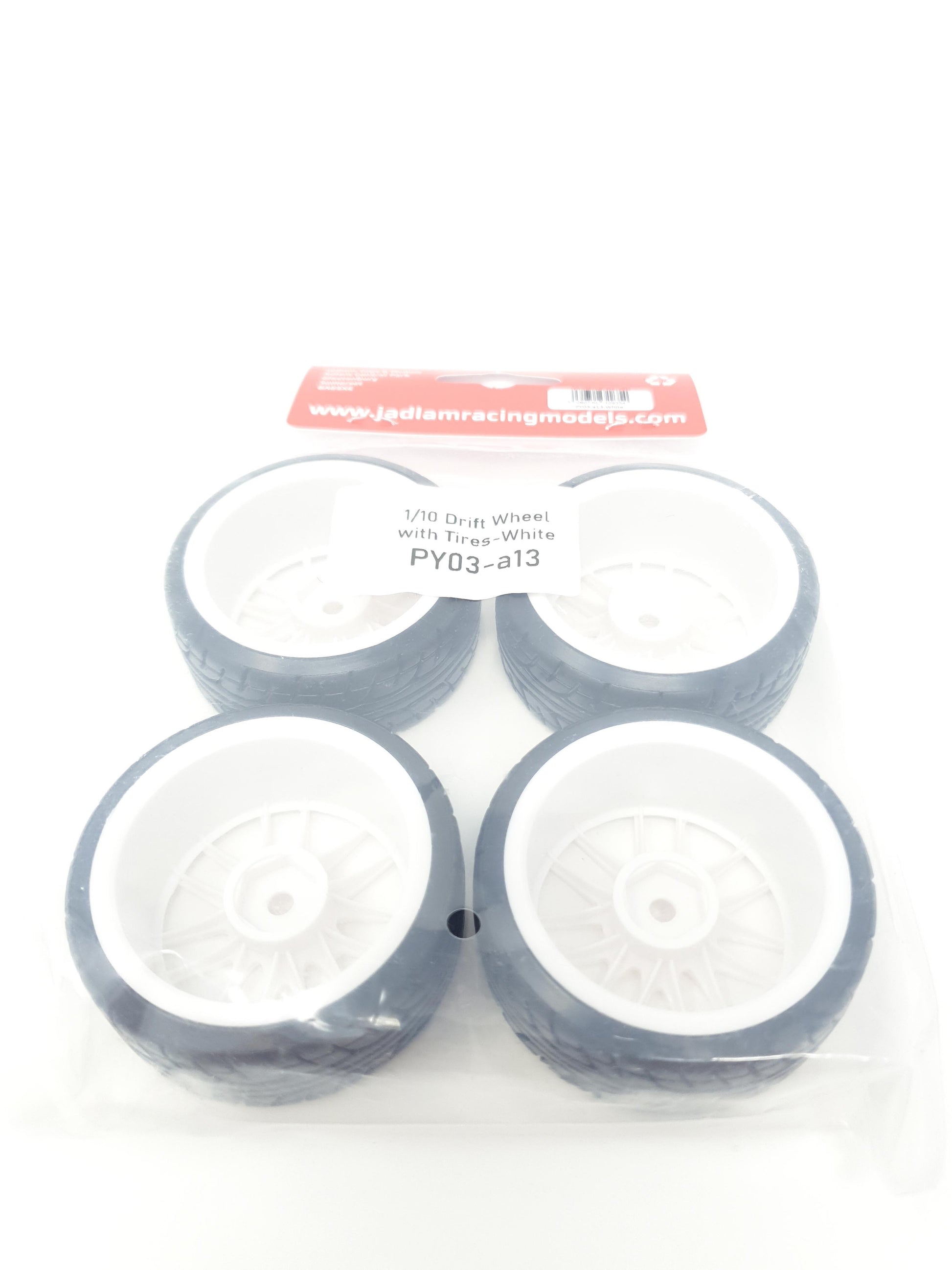 RC Car 1:10 Drift Wheels 7-Double Spoke White PY03-A13 - Pack of Four