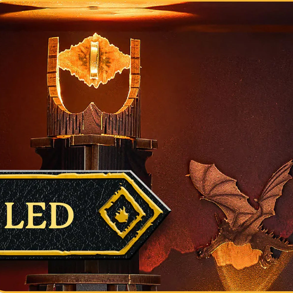 - Atmospheric LED lighting brings the dark eye of Sauron to life