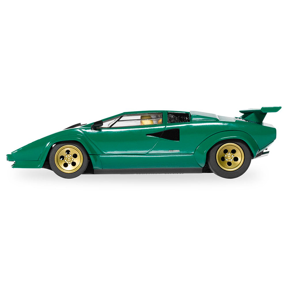 Looking outstanding in any colour, the Lamborghini Countach looks especially gorgeous in this shade of metallic green. A superstar of the 1980s, the Countach looks just at home on the streets of Monaco as it does on the Stelvio Pass, and now it can be on your Scalextric layout too!