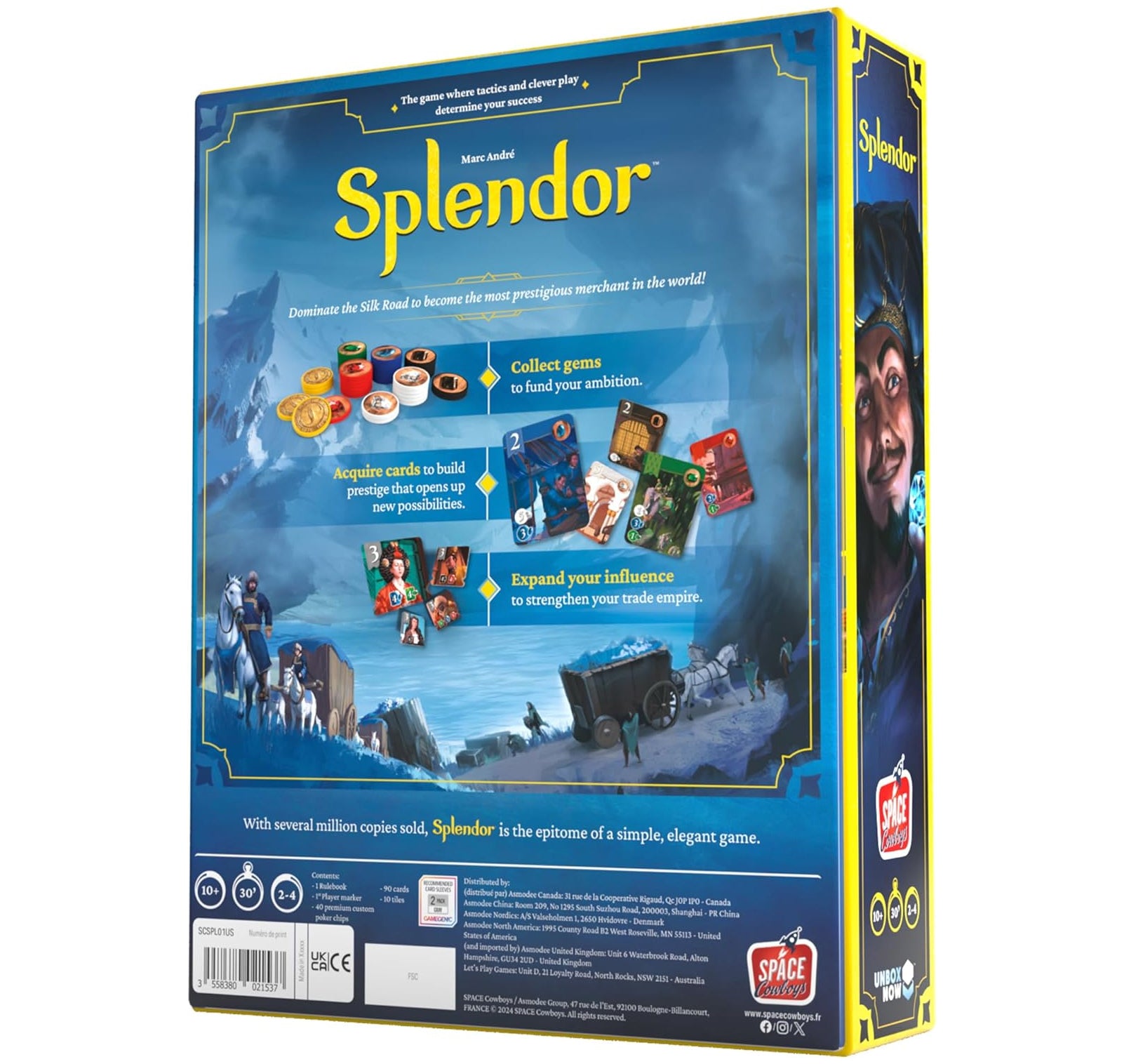 - FUN FOR ALL: A simple but unique economy makes Splendor easy to learn, but offers a challenging puzzle every time.