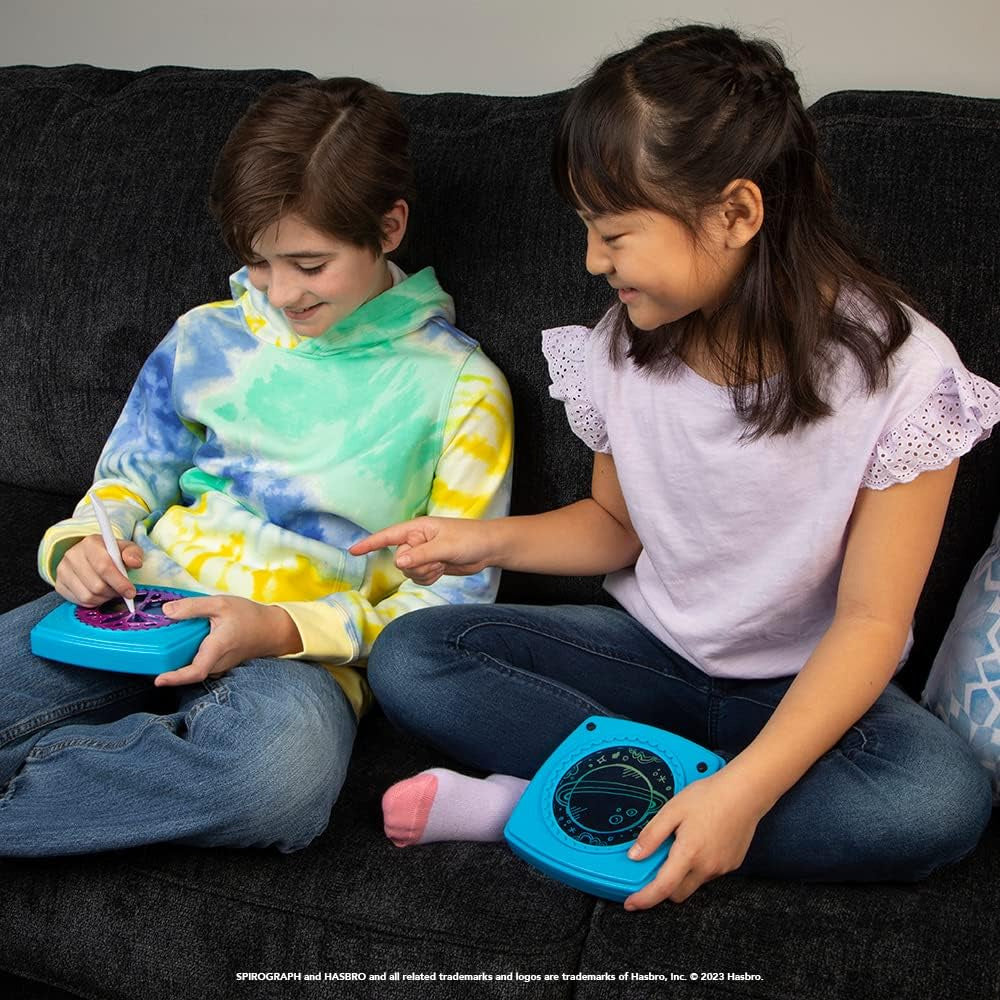 Spirograph has been amazing and inspiring generations of artists for over 50 years! Choose a fun-shaped precision ring, use the Spirograph putty to hold it in place, then spin one of the precision wheels around using the design pens.