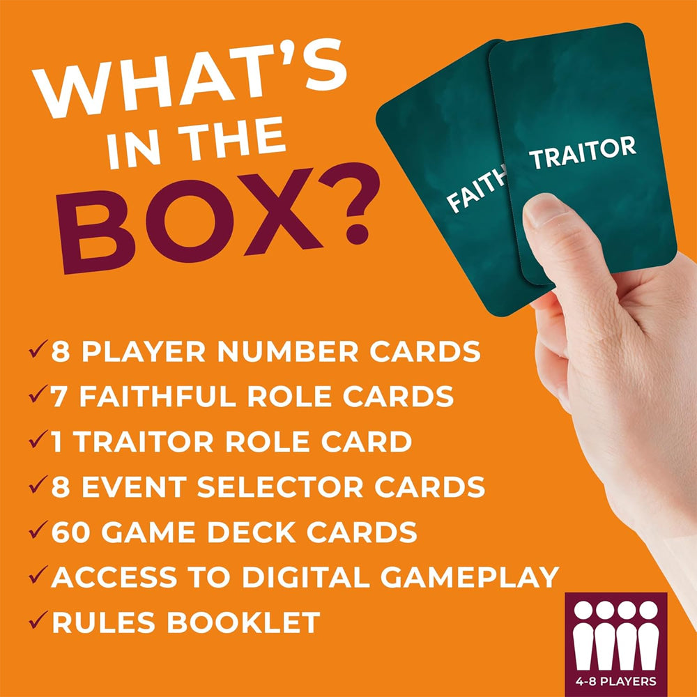 FAITHFUL VS. TRAITOR GAMEPLAY: Players are randomly assigned the roles of The Faithful or The Traitor at the beginning of each game. The Faithful’s must collaboratively deduce The Traitors' identity and vote them out whilst The Traitor must cleverly deceive them to win the game.