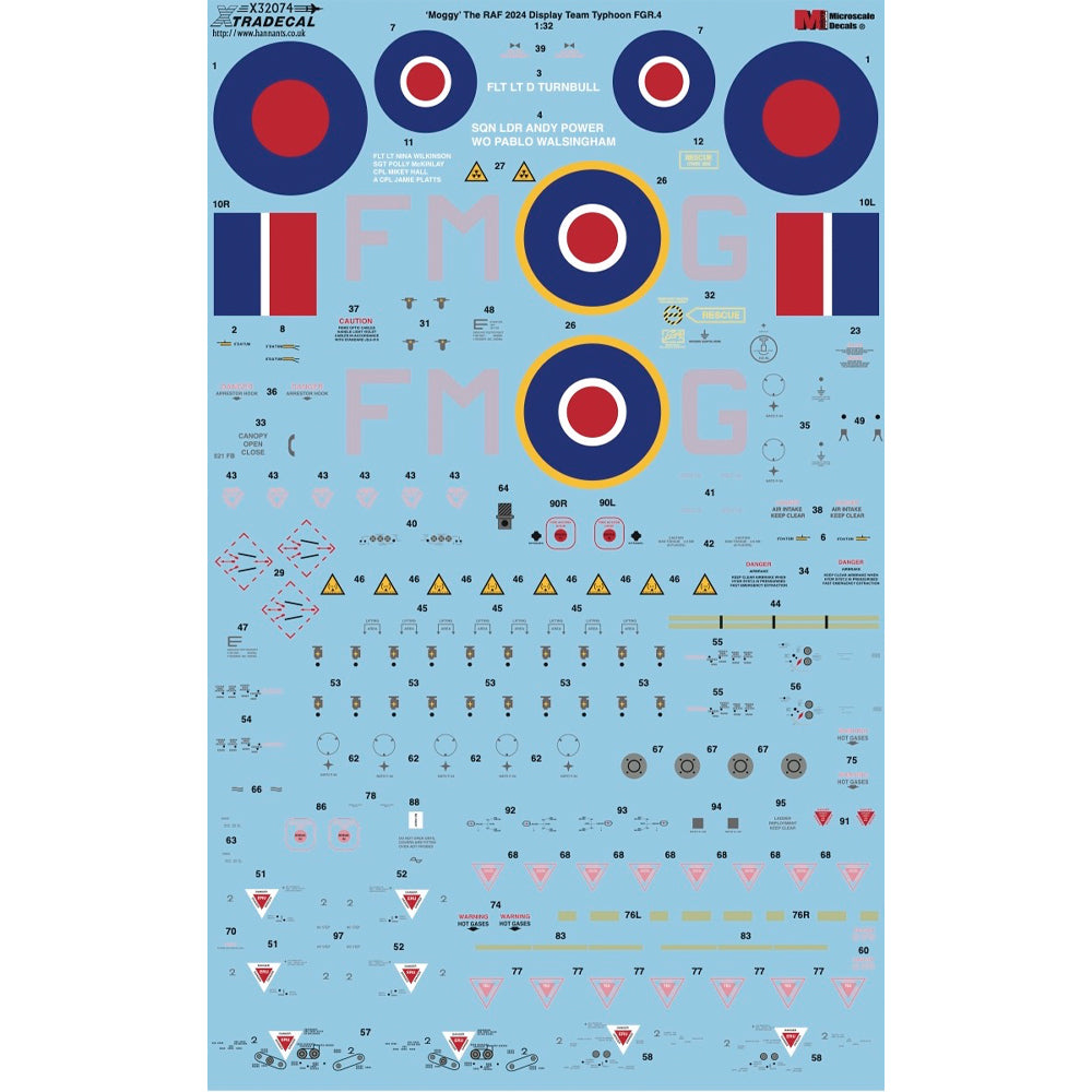 Xtradecal 32074 'Moggy' RAF 2024 Display Team Typhoon FGR.4 1:32 Model Decal Set