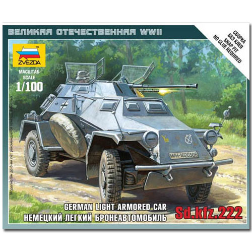 ZVEZDA 6157 Sd.Kfz. 222 Armoured Car Snap Fit Model Kit 1:100