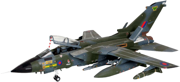 The Tornado is one of the most successful and versatile NATO weapons systems and has already proved itself in many conflicts. At the beginning of any conflict RAF Tornados equipped with ALARM missiles are among the first allied aircraft to fly their hazardous air defence mission into enemy air space. They are followed by other Tornado units that can safely fly in and make precision bombing attacks on enemy positions. With their large 2250 litre auxiliary tanks, the RAF Tornados also have an abnormally long range. The max. speed is 1340 km/h at 150 m.