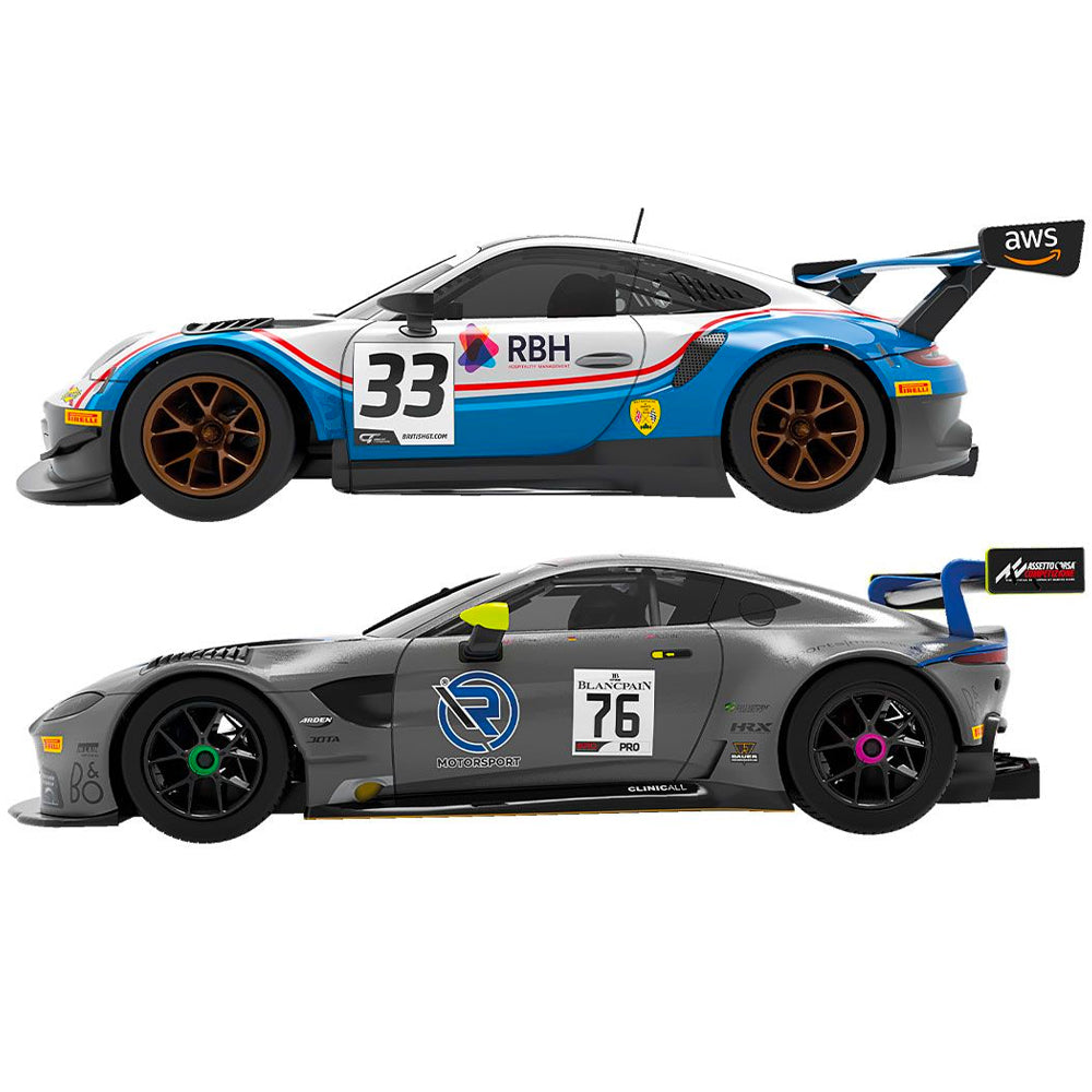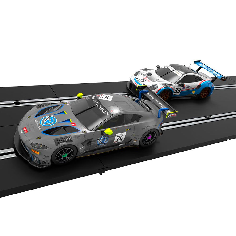 It's Porsche vs Aston Martin in this fantastic new ARC set from Scalextric. The two GT3 cars go head to ahead around this challenging Scalextric layout, with the App Race Control software available to make sure the pit stops are on time and the winner has all the stats to prove their dominance! This set includes over 6.8 metres of track which can create 12 unique layouts, and also includes barriers.