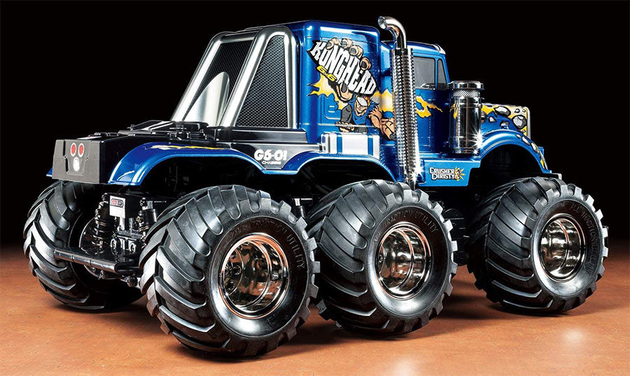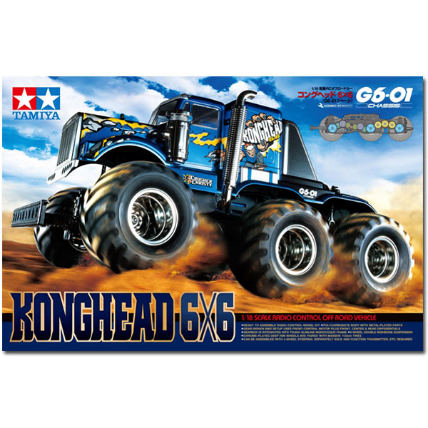 Take a look at Tamiya's first ever big-wheeled 6WD model - the Konghead 6x6! This model utilizes a new geardriven 6WD chassis which used the GF-01 as a starting point. The excellent drive it provides will make for supremely fun off-road driving.